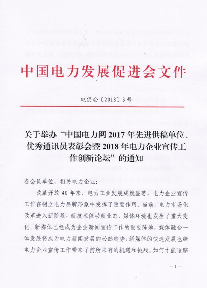 中國電力網(wǎng)2017年先進(jìn)供稿單位、優(yōu)秀通訊員表彰會(huì)暨2018年度電力企業(yè)宣傳工作創(chuàng)新論壇