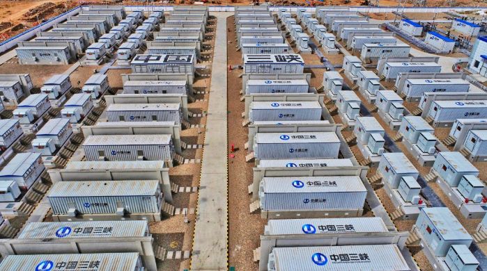 2021年末,三峽烏蘭察布新一代電網(wǎng)友好綠色電站示范項目首批機組成功并入內蒙古電網(wǎng),成為國內首個儲能配置規(guī)模達到千兆瓦時的新能源場站。電站總建設規(guī)模200萬千瓦,分為170萬千瓦風電項目和30萬千瓦光伏項目,全部投產后,年平均發(fā)電量近60億千瓦時,可滿足近30萬戶家庭月用電量(按每戶居民月用電量200千瓦時計)。項目配套建設55萬千瓦×2小時儲能系統(tǒng),可儲存110臺5兆瓦風機滿發(fā)2小時產生的能量,在陰天或無風時有效“查漏補缺”,為電網(wǎng)系統(tǒng)調峰調頻等提供輔助服務。