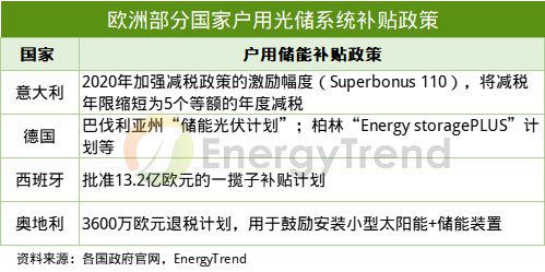 歐洲部分國(guó)家戶用儲(chǔ)能補(bǔ)貼政策