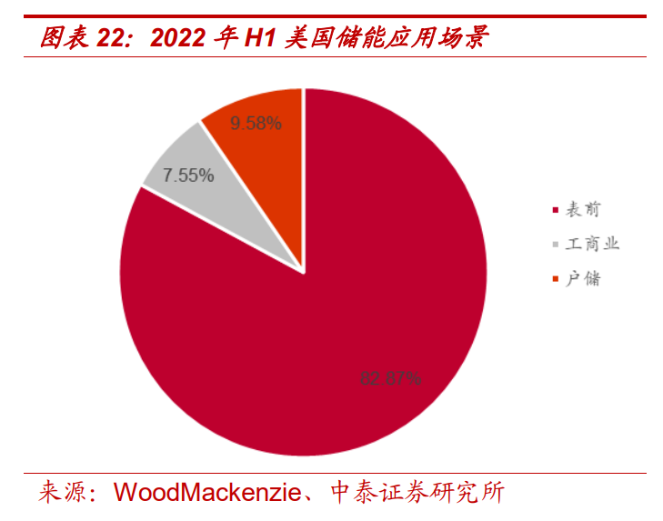 1) 美國:儲(chǔ)能維持高景氣,裝機(jī)量持續(xù)增長。新型儲(chǔ)能維持高增速,2022 年 H1 裝機(jī)量高企。根據(jù) CNESA 數(shù)據(jù)顯 示,2022H1 美國儲(chǔ)能新增規(guī)模達(dá) 2.3GW/5.9GWh,同比增長 188%、 157%。其中表前儲(chǔ)能貢獻(xiàn)了主要裝機(jī)量,2022H1 表前儲(chǔ)能新增裝機(jī) 量達(dá) 1.9GW/5.0GWh,工商業(yè)為 171MW/393MWh,戶儲(chǔ)為 217MW/ 517MWh。美國儲(chǔ)能產(chǎn)業(yè)機(jī)制成熟,預(yù)計(jì)將保持高景氣,根據(jù) WoodM ackenzie 預(yù)計(jì),美國 2023-2026 年新增裝機(jī)量分別為 28.4GWh、45. 6GWh、50.7GWh、52.4GWh,預(yù)計(jì) 2022-2026 年新增裝機(jī)量 CAGR 可達(dá) 40.36%。