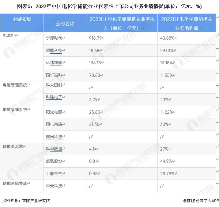 電化學(xué)儲能產(chǎn)業(yè)代表性企業(yè)經(jīng)營情況