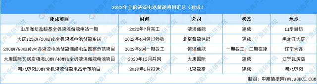 全釩液流電池具有響應(yīng)快、安全環(huán)保、壽命長、規(guī)模大等特點,適合長時儲能,市場發(fā)展空間廣闊。2022年,我國全釩液流電池儲能項目中,建成項目5個,在建項目14個。