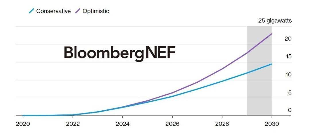 圖:中國(guó)液流電池裝機(jī)規(guī)模預(yù)測(cè)(彭博新能源財(cái)經(jīng))