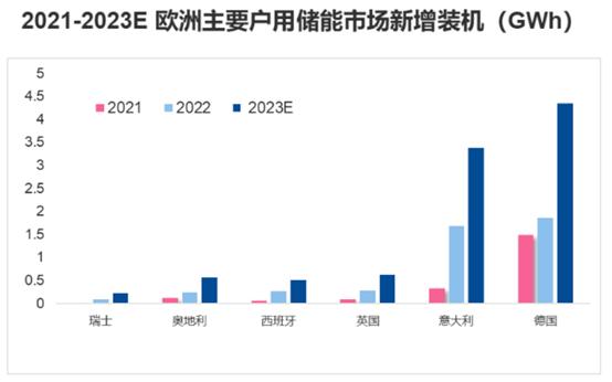 奧地利H1新增裝機(jī)將略低于英國(guó),但超過(guò)西班牙達(dá)到0.3GWh;與此同時(shí)瑞士,荷比盧地區(qū)預(yù)計(jì)將增加0.32GWh; 整體歐洲戶用市場(chǎng)新增裝機(jī)規(guī)模在2023年將達(dá)到9.57GWh。