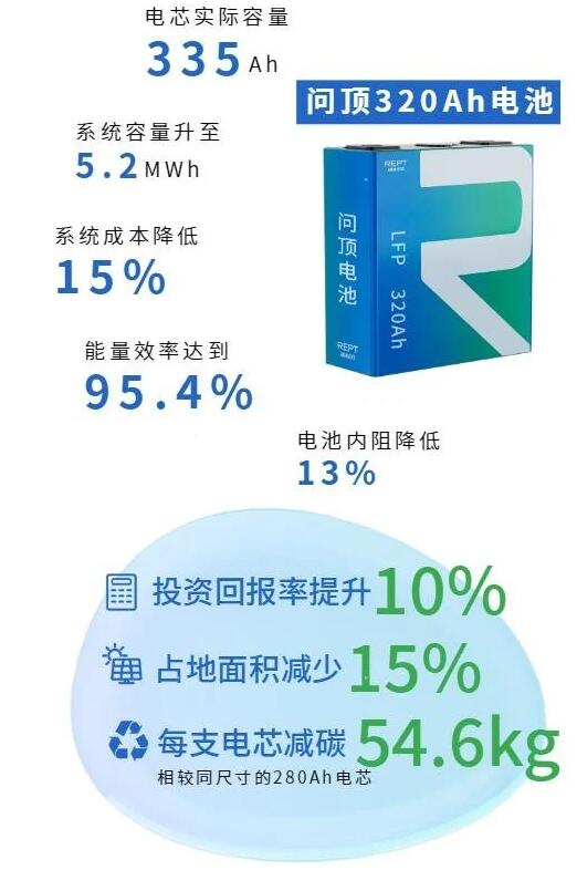 也就是說,當瑞浦蘭鈞 320Ah 問頂儲能電池進行規(guī)?;褂脮r,可實現系統成本降低 15%,占地面積減少 15%,投資回報率提升 10% 的目標,能極大提升客戶產品的市場競爭力,降低企業(yè)的周期性成本和資金風險。此外,每支 320Ah 問頂電池相較同尺寸的 280Ah 電池可減碳 54.6kg,實現減碳減排,助力碳中和。