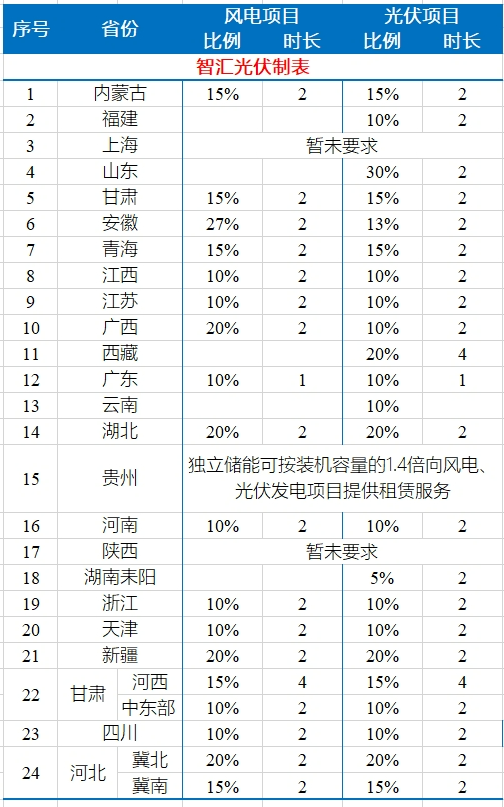 24省新能源提出配儲要求匯總