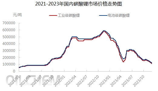 上游環(huán)節(jié),截至12月,鋰電上游碳酸鋰價(jià)格已全線跌破10萬(wàn)元/噸大關(guān)。而在去年,由于動(dòng)力電池及儲(chǔ)能行業(yè)需求爆發(fā),上游原材料一度供不應(yīng)求,碳酸鋰最高曾攀升至60萬(wàn)元/噸。