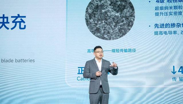 在短刀上實現(xiàn)快充,背后是電池工藝和設計上的又一次突破。例如電池的正極部分,采用的摻雜包覆技術,離子傳輸路徑降低了40%,電阻降低了10%;負極采用的表面技術和一次顆粒、二次顆粒的搭配技術,以及吸液性更好的添加劑,讓動力性能得到了提升;再包括電解液使用的新材料,以及類似于全極耳的直焊工藝,讓載流面積更大,最終讓短刀快充成為了可能。