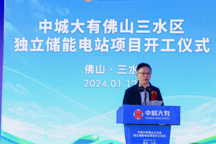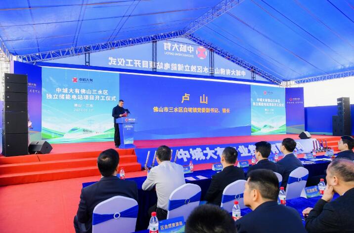 本網(wǎng)訊 1月12日上午,中城大有產(chǎn)業(yè)集團(tuán)有限公司首個(gè)簽約、首個(gè)開工的佛山三水100MW/200MWh獨(dú)立儲(chǔ)能電站項(xiàng)目開工儀式隆重舉行。佛山市三水區(qū)區(qū)委副書記、區(qū)長黃海,白坭鎮(zhèn)黨委書記喻曉坤,黨委副書記、鎮(zhèn)長盧山,深圳市羅湖區(qū)清水河街道黨工委書記魏剛,深圳市羅湖區(qū)桂園街道二級(jí)調(diào)研員伍燦榮,安徽省巢湖市副市長闞瑞,江蘇省金湖縣總工會(huì)副主席萬立民,中霆控股集團(tuán)副總經(jīng)理王曉剛,中城大有產(chǎn)業(yè)集團(tuán)董事長吳發(fā)福,重慶中域財(cái)眾總裁涂小明等有關(guān)領(lǐng)導(dǎo)出席并見證開工儀式。