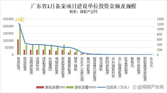 從1月廣東儲(chǔ)能備案項(xiàng)目建設(shè)單位來(lái)看,總投資額超83億。其中,索英電氣2個(gè)項(xiàng)目總投資金額高達(dá)22億元,總規(guī)模為600MW/1200MWh;廣訊力神總投資金額最少,為27.84萬(wàn)元,規(guī)模為0.1MW/0.232MWh;當(dāng)然,在這些建設(shè)單位中像協(xié)鑫、恒運(yùn)儲(chǔ)能、皇鼎儲(chǔ)能都是經(jīng)常出現(xiàn)的企業(yè)。