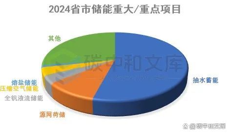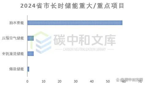 01 長時(shí)儲(chǔ)能正在爆發(fā)長時(shí)儲(chǔ)能系統(tǒng)是一種能夠?qū)崿F(xiàn)長時(shí)間跨越日夜、月份乃至季節(jié)進(jìn)行充放電循環(huán)的儲(chǔ)能系統(tǒng),旨在滿足電力系統(tǒng)長期穩(wěn)定運(yùn)行的需要。隨著可再生能源發(fā)電的滲透率不斷提高,對(duì)長時(shí)儲(chǔ)能系統(tǒng)的需求也日益增長。可再生能源發(fā)電具有間歇性的特點(diǎn),其主要發(fā)電時(shí)段與電力需求高峰時(shí)段存在錯(cuò)位,因此需要長時(shí)儲(chǔ)能系統(tǒng)來儲(chǔ)存多余的電力,并在需要時(shí)釋放出來以平衡電力系統(tǒng)。長時(shí)儲(chǔ)能的儲(chǔ)能方式主要包括:釩液流電池、壓縮空氣儲(chǔ)能(CAES)、抽水蓄能、熱儲(chǔ)能、重力儲(chǔ)能。而在已公布的109項(xiàng)2024重大/重點(diǎn)投資計(jì)劃項(xiàng)目中,長時(shí)儲(chǔ)能就有68項(xiàng),占總計(jì)劃儲(chǔ)能投資項(xiàng)目的62.4%,源網(wǎng)荷儲(chǔ)項(xiàng)目11項(xiàng)。