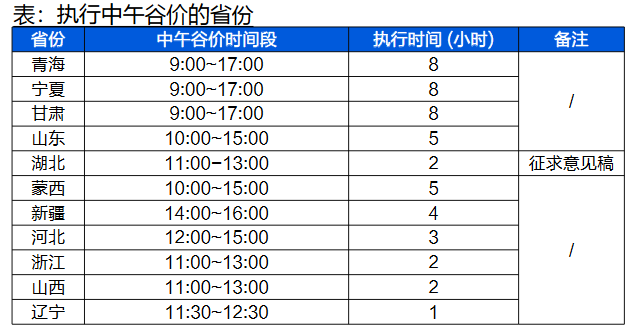此外,當前峰谷價差套利是工商業(yè)儲能的主要盈利渠道,儲能系統(tǒng)價格下行有望進一步提升經(jīng)濟性。隨著光伏發(fā)電供大于求,中午執(zhí)行谷段電價或成為趨勢。截至目前,全國已有11個省份部分月份中午出現(xiàn)谷電,2充2放從原來的1次峰/谷+1次峰/平轉變?yōu)?次峰/谷,儲能收益進一步提升。