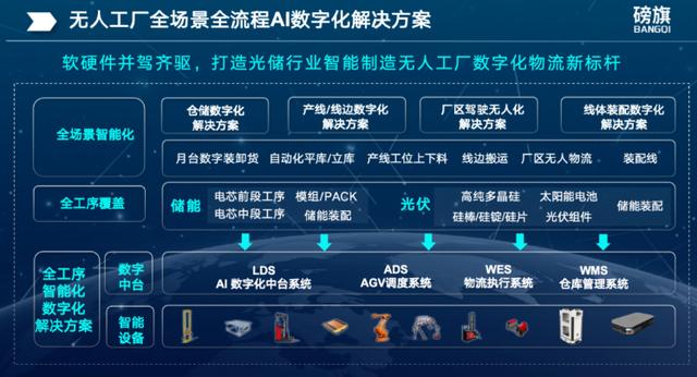 在此靠山下,磅旗科技踴躍摸索創(chuàng)新,使用構(gòu)建無(wú)人工場(chǎng)AI數(shù)字化,打造了自立可控的“軟件+硬件+數(shù)據(jù)+算法”云管端邊一體化處理方案,推出多品類AGV/機(jī)械人夾雜調(diào)理系統(tǒng)ADS、企業(yè)級(jí)無(wú)人工場(chǎng)數(shù)字中臺(tái)系統(tǒng)LDS,可能助力各AGV實(shí)現(xiàn)數(shù)據(jù)互通、協(xié)同功課,買通各工序過(guò)程的系統(tǒng)卡點(diǎn)和設(shè)施盲點(diǎn),賦能儲(chǔ)能產(chǎn)業(yè)智能制作數(shù)字化周全晉級(jí)。
