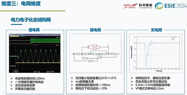 第三個(gè)創(chuàng)新維度就是電網(wǎng)側(cè)。現(xiàn)在的電力電子化,不管是光伏也好,儲(chǔ)能也好,對(duì)電網(wǎng)提出很大挑戰(zhàn)。當(dāng)前的一個(gè)構(gòu)網(wǎng),我們提出在強(qiáng)電網(wǎng)、弱電網(wǎng)甚至無(wú)電網(wǎng)的情況下面,新型儲(chǔ)能如何適應(yīng)電網(wǎng)的各種需求。