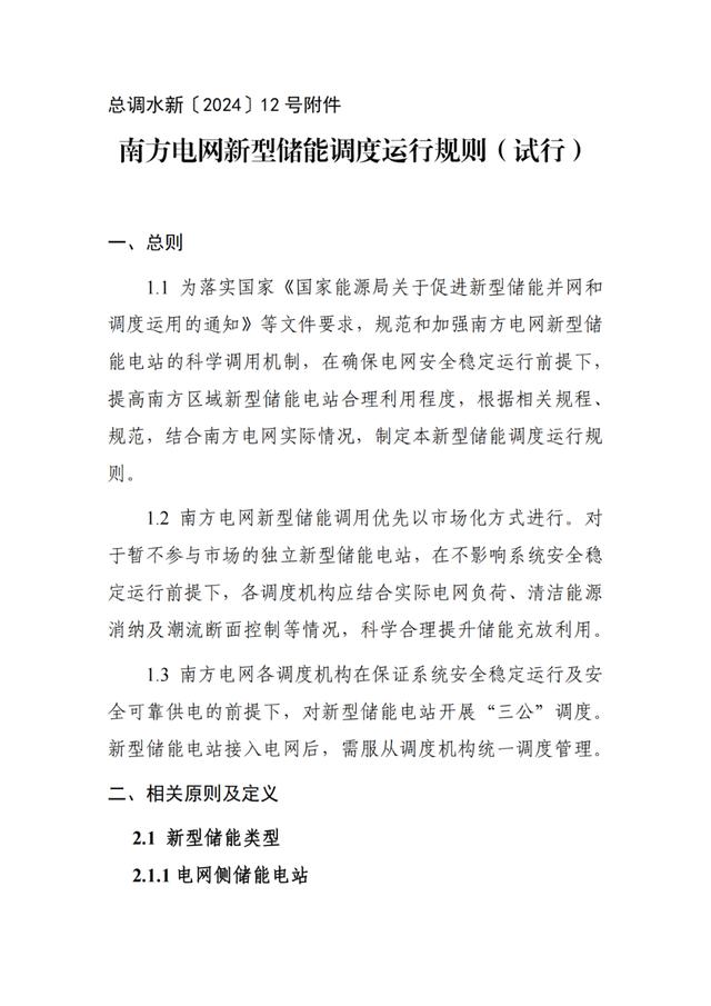 南方電網(wǎng)新型儲能調度運行規(guī)則(試行)