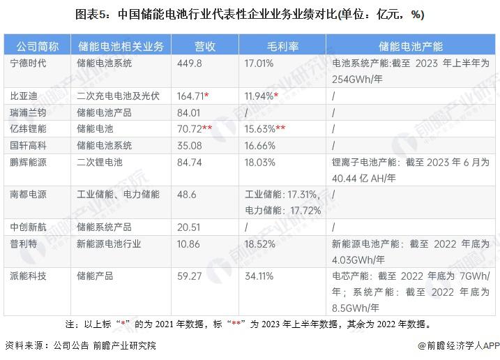 儲(chǔ)能電池行業(yè)代表性企業(yè)業(yè)務(wù)業(yè)績情況