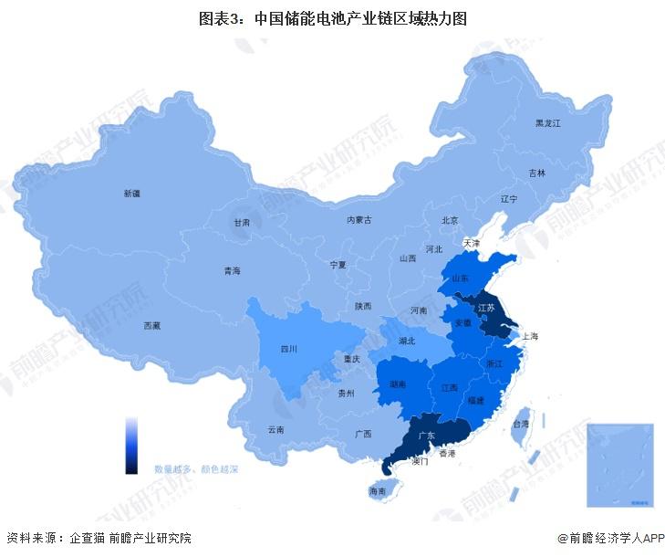 儲(chǔ)能電池產(chǎn)業(yè)鏈區(qū)域熱力地圖:廣東、江蘇企業(yè)分布最多