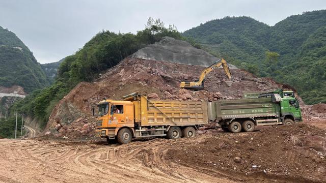 工程車正在裝運從山體里挖出的石頭。李蔓毓