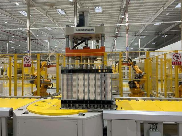 緯景儲(chǔ)能珠海“超G工廠”生產(chǎn)線上的機(jī)械手臂正在工作。中青報(bào)·中青網(wǎng)見習(xí)記者 賈驥業(yè)/攝