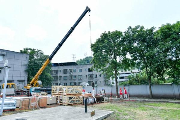 國(guó)網(wǎng)重慶江津供電公司員工在吊裝設(shè)備。王化全攝