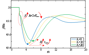 圖2 附加虛擬慣性控制時系統(tǒng)的頻率響應(yīng)