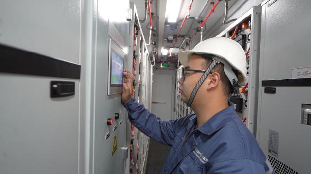 金寨申鑫儲能電站工作人員在調(diào)試儲能設(shè)備。(采訪單位供圖)