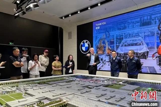 圖為記者走進(jìn)華晨寶馬鐵西工廠聽取介紹。李晛 攝