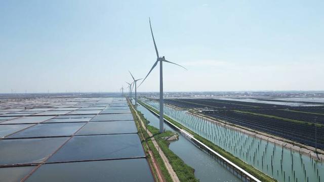 該項目作為魯北基地首家投產(chǎn)運營的風(fēng)光儲試點,創(chuàng)新性地采用“漁光互補”“鹽光互補”發(fā)展模式,實現(xiàn)了鹽光、漁光與儲能的集中連片、立體高效利用,標(biāo)志著綠色發(fā)展的新實踐。而幾年前,這片區(qū)域還是一片荒蕪的鹽堿地,營里鎮(zhèn)經(jīng)濟發(fā)展辦副主任王恒回憶,這里曾以鹽田和養(yǎng)殖灘涂為主,產(chǎn)業(yè)單一、發(fā)展模式傳統(tǒng),海洋資源利用率低,限制了區(qū)域的綜合發(fā)展。