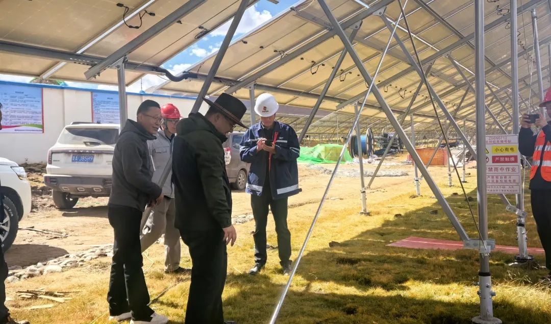 在伯托100MW光伏儲能項目現(xiàn)場,李成統(tǒng)與國家電投山南電力公司負責人視頻連線,就加快施工進度、謀劃延伸產(chǎn)業(yè)鏈、形成發(fā)展線等方面進行交流。與現(xiàn)場負責人深入交談,實地查看項目進展,詳細了解項目建設進度、質(zhì)量管控、安全生產(chǎn)、生態(tài)環(huán)境等情況,現(xiàn)場協(xié)調(diào)解決項目建設過程中存在的困難和問題。