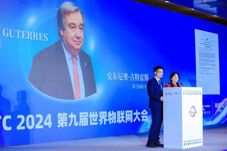 聯(lián)合國秘書長古特雷斯先生為大會發(fā)來致辭,對大會的成功舉辦表示熱烈祝賀。他高度評價了物聯(lián)網(wǎng)在全球經(jīng)濟社會發(fā)展中的重要作用,指出數(shù)字技術(shù)正在改變?nèi)藗兩畹姆椒矫婷妫苿又悄茈娋W(wǎng)、智慧家庭和智慧城市的發(fā)展。古特雷斯強調(diào),釋放數(shù)字新經(jīng)濟的潛力取決于一個萬物互聯(lián)的世界,呼吁各國共同努力,確保數(shù)字技術(shù)平等服務(wù)于全人類。