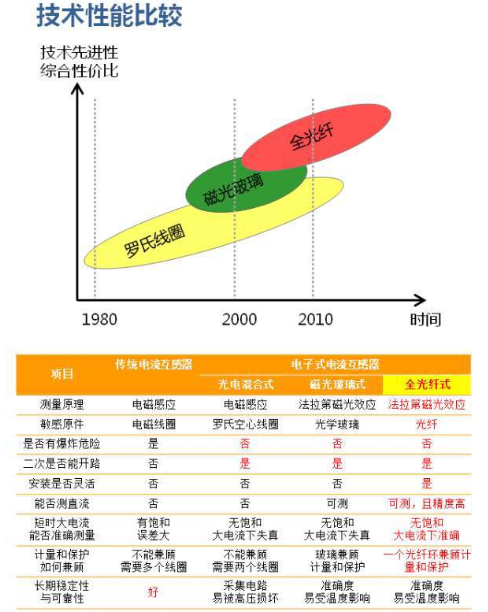 圖1電子式互感器及不同技術(shù)對比