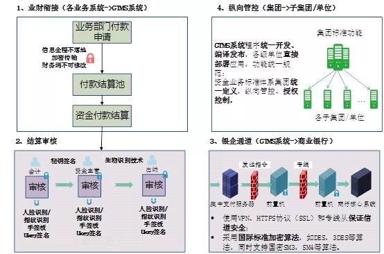 建立從業(yè)務(wù)申請、財務(wù)審核到支付通道、縱向管控全面覆蓋,符合國家信息安全等三級要求的多重資金安全保障體系,如圖1所示。