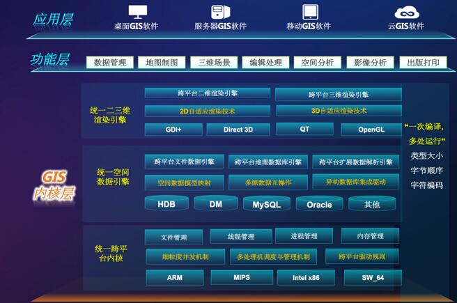 在“雙輪驅(qū)動”戰(zhàn)略思想下,MapGIS 10.5 Pro產(chǎn)品應(yīng)運而生,基于統(tǒng)一的跨平臺內(nèi)核,實現(xiàn)了全國產(chǎn)化體系架構(gòu)和X86系統(tǒng)架構(gòu)的“雙輪驅(qū)動”,構(gòu)建全國產(chǎn)化GIS平臺和全空間智能GIS平臺兩大自主可控產(chǎn)品,延續(xù)MapGIS 10.5云端融合的產(chǎn)品體系,強化九州中國芯,提升全空間智能GIS技術(shù),并推出組件式、搭建式、配置式三大敏捷開發(fā)方式,為用戶提供持續(xù)、穩(wěn)健、高效的技術(shù)支撐,為行業(yè)應(yīng)用賦能。