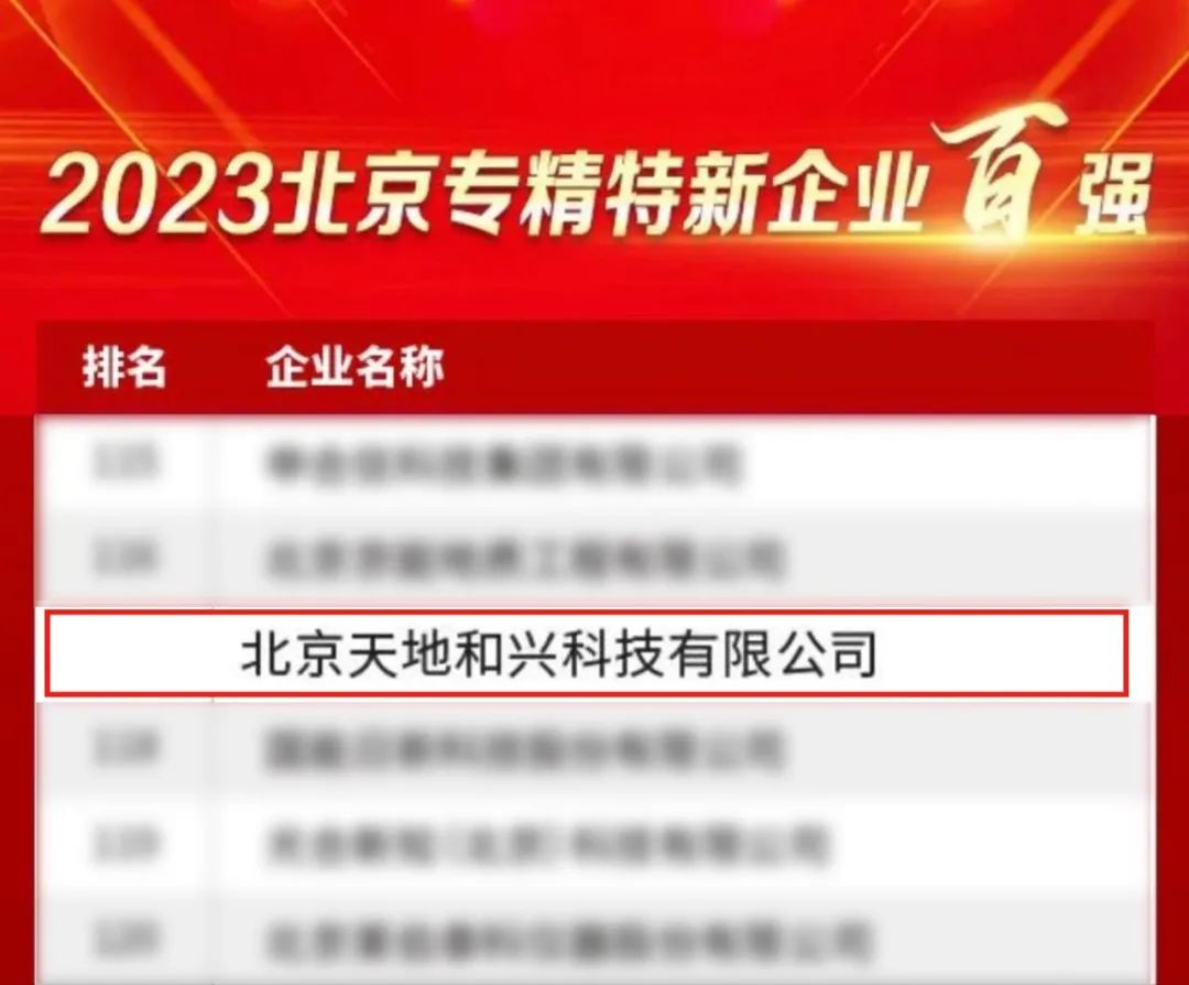 天地和興榮登2023北京專精特新企業(yè)百強(qiáng)榜單
