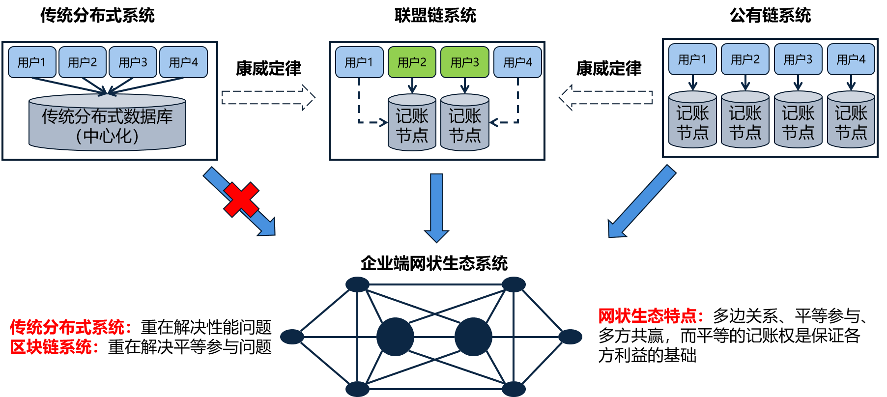 社會環(huán)境已經(jīng)從具有較強(qiáng)依附關(guān)系的中心化輻射狀生態(tài)結(jié)構(gòu)逐漸演進(jìn)至平臺化、多中心、自由協(xié)作的網(wǎng)狀體系,尤其是在企業(yè)端,根據(jù)康威定律,設(shè)計(jì)對象的組織結(jié)構(gòu)會映射到其系統(tǒng)結(jié)構(gòu),所以,符合多中心網(wǎng)狀生態(tài)特點(diǎn)的系統(tǒng)架構(gòu)必然會應(yīng)運(yùn)而生。傳統(tǒng)的分布式系統(tǒng)其誕生目的主要是為了提升系統(tǒng)性能,而區(qū)塊鏈系統(tǒng)則更多考慮了如何幫助用戶平等參與網(wǎng)絡(luò),這應(yīng)該是二者在設(shè)計(jì)理念上的核心差別,因此,區(qū)塊鏈系統(tǒng)比傳統(tǒng)的分布式系統(tǒng)更適于多方共贏生態(tài)環(huán)境的構(gòu)建。這個是看起來有點(diǎn)兒“務(wù)虛”,但是也有其道理的聯(lián)盟鏈的價(jià)值。公鏈的問題在于,如果現(xiàn)階段應(yīng)用,顯然不符合企業(yè)端生態(tài)的實(shí)際情況,企業(yè)端的生態(tài)環(huán)境即便你一開始沒設(shè)計(jì)中心也會自然產(chǎn)生中心,這是人的社會性決定的,所以也不要那么排斥所謂的“中心化”,鏡子中照出來的無論好不好看都是你自己,化妝不解決本質(zhì)問題。