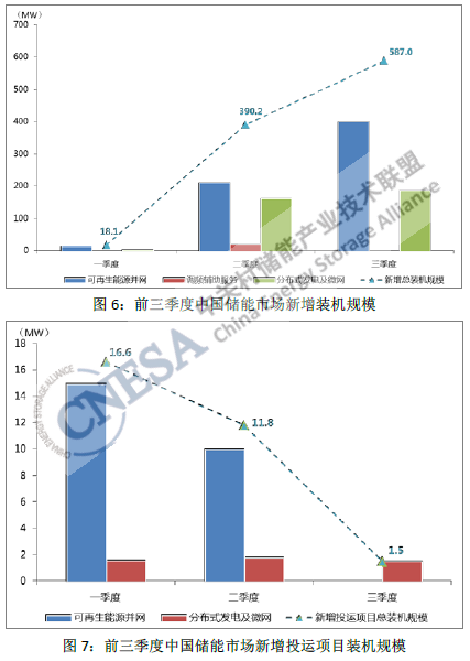 據(jù)中關村儲能產(chǎn)業(yè)技術(shù)聯(lián)盟(CNESA)項目庫的不完全統(tǒng)計,2016年三季度,中國新增儲能項目(含投運、在建、規(guī)劃中項目)14個,裝機規(guī)模587.0MW,同比增長586%,環(huán)比今年二季度增長了50%。三季度新增項目主要分布在可再生能源并網(wǎng)和分布式發(fā)電及微網(wǎng)領域。