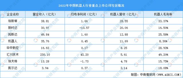 工業(yè)機(jī)器人行業(yè)重點(diǎn)上市公司經(jīng)營(yíng)情況對(duì)比分析