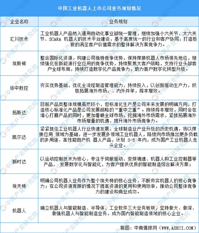 工業(yè)機(jī)器人行業(yè)重點(diǎn)上市公司業(yè)務(wù)規(guī)劃對(duì)比