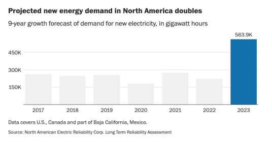 類似的事情正在整個美國上演,西北地區(qū)的俄勒岡州,波特蘭最近將未來五年新增電力需求的預測提高了一倍,稱數據中心和“快速工業(yè)增長”是驅動因素。