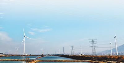 位于福建省莆田市平海灣的風(fēng)力發(fā)電場。