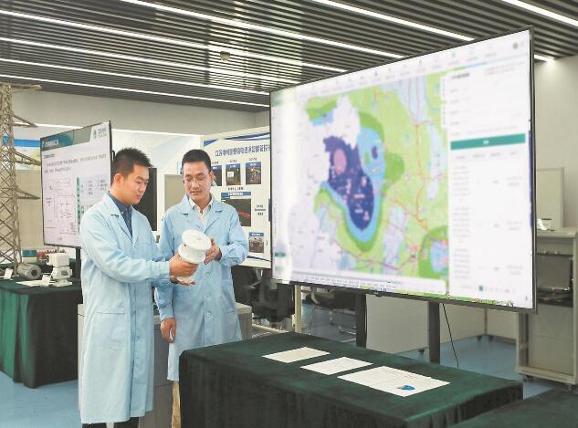 江蘇電科院員工在江蘇電網(wǎng)防災(zāi)減災(zāi)中心探討持續(xù)性強(qiáng)降雨對(duì)城市電網(wǎng)設(shè)備的影響。孫婷 攝