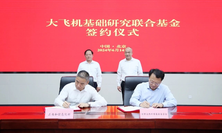 6月14日,工業(yè)和信息化部、國家自然科學基金委員會簽署合作協(xié)議,共同設(shè)立大飛機基礎(chǔ)研究聯(lián)合基金。工業(yè)和信息化部黨組書記、部長金壯龍,國家自然科學基金委員會黨組書記、主任竇賢康,工業(yè)和信息化部黨組成員、副部長辛國斌,國家自然科學基金委員會黨組成員、副主任王希勤出席活動。