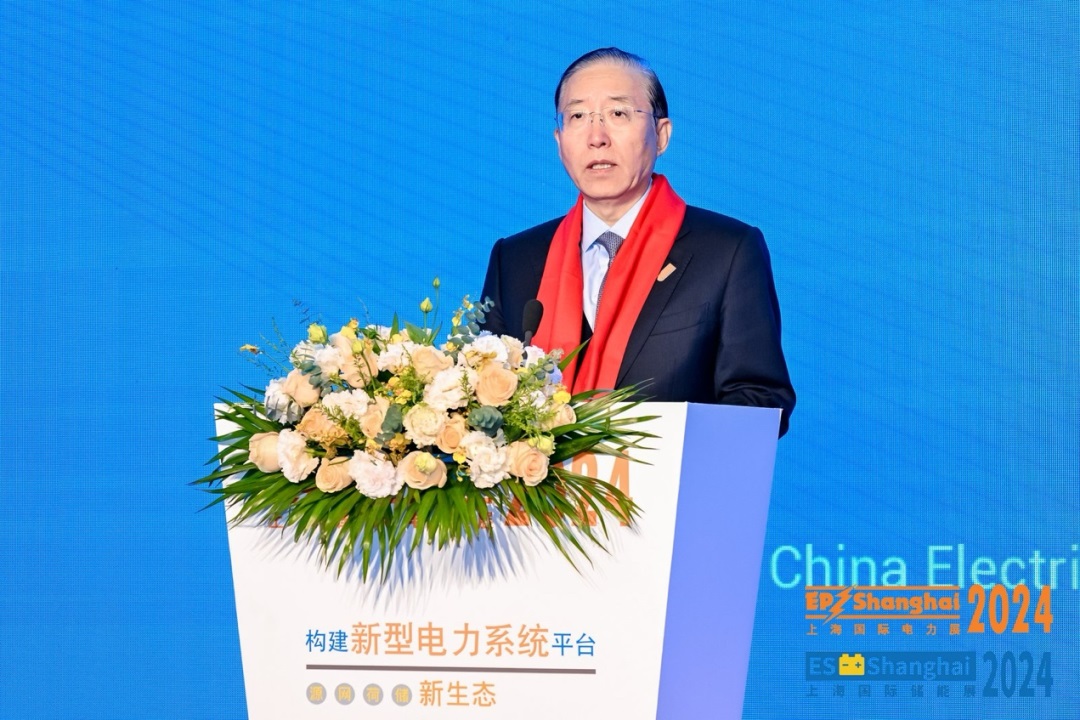 中國(guó)電力企業(yè)聯(lián)合會(huì)理事長(zhǎng)、全球能源互聯(lián)網(wǎng)發(fā)展合作組織主席辛保安致辭。