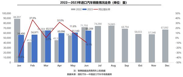 國(guó)機(jī)汽車(chē)分析稱,6月銷(xiāo)量同比下滑,主要受去年同期疫情影響下的低基數(shù)效應(yīng)淡出影響,疊加中央及地方促消費(fèi)政策不斷加碼,進(jìn)一步加速釋放了新能源汽車(chē)的消費(fèi)需求,側(cè)面影響了以燃油車(chē)為主的進(jìn)口乘用車(chē)的市場(chǎng)需求。環(huán)比增長(zhǎng),則主要是6月迎來(lái)618大促及端午節(jié)雙重效應(yīng),疊加廠家及經(jīng)銷(xiāo)商半年度節(jié)點(diǎn)沖量任務(wù)指標(biāo)以及部分主流品牌限量版的推出,帶動(dòng)銷(xiāo)量環(huán)比增長(zhǎng)。