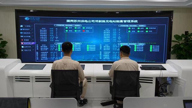 國(guó)網(wǎng)蘇州供電公司工作人員利用監(jiān)控運(yùn)營(yíng)管理系統(tǒng),對(duì)無(wú)線充電樁進(jìn)行就地監(jiān)控和能量管理。