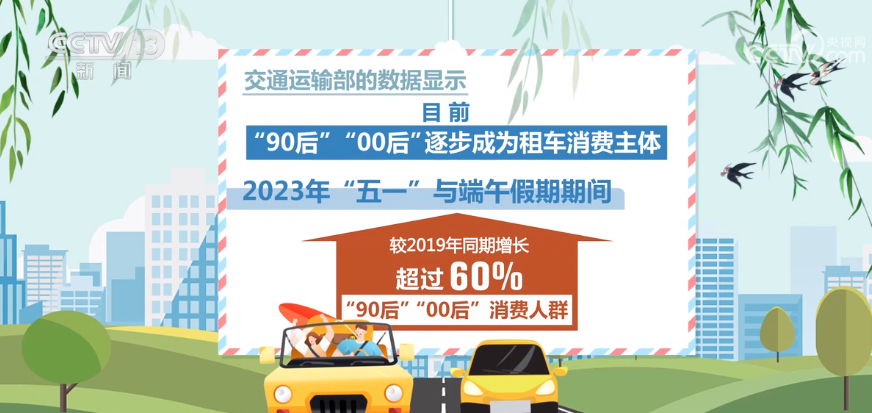 交通運(yùn)輸部的數(shù)據(jù)顯示,目前“90后”“00后”逐步成為租車消費(fèi)主體,今年“五一”與端午假期期間,“90后”“00后”消費(fèi)人群較2019年同期增長(zhǎng)超過60%,在全部消費(fèi)群體中占比過半。新能源汽車,設(shè)計(jì)年輕化、時(shí)尚化,契合了年輕人這一主力消費(fèi)群體的消費(fèi)習(xí)慣。相關(guān)統(tǒng)計(jì)顯示,截至目前,國(guó)內(nèi)新能源車輛租賃訂單2023年比2022年同期上漲了317%。