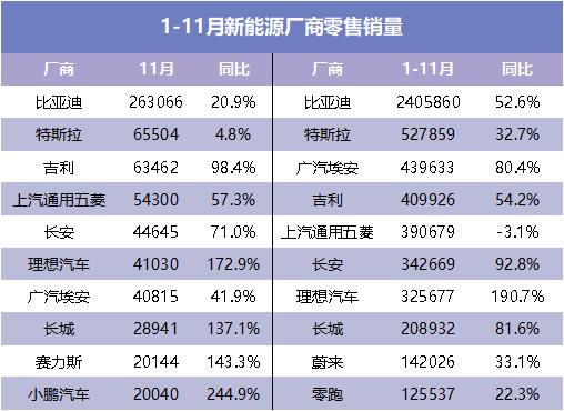 至于廣汽埃安,雖然排在第三的位置,但從最近兩個月的市場形勢來看,理想、長城、賽力斯的單月增速上升極快,均超過了100%,最夸張的小鵬汽車11月同比增速更是達(dá)到了244.9%。