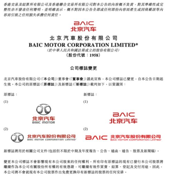 據(jù)介紹,新標(biāo)志將用于相關(guān)公司文件(包括但不限于中期及年度報告、公告、通函、通告、股票及新聞稿)。北京汽車同時表示,變更本公司標(biāo)志不會影響現(xiàn)有本公司股東的任何權(quán)利。所有印有原標(biāo)志的現(xiàn)有已發(fā)行本公司股票將繼續(xù)作為本公司有關(guān)股份所有權(quán)的有效憑證,可繼續(xù)有效作買賣、結(jié)算、登記及交付用途。因此,本公司將不會就現(xiàn)有本公司股票作出免費更換印有新標(biāo)志的股票的任何安排。