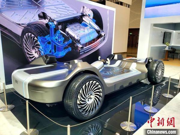 9月27日,為期三天的2024世界新能源汽車(chē)大會(huì)在??陂_(kāi)幕。圖為車(chē)企在全球新能源汽車(chē)產(chǎn)品及技術(shù)展上展示的新能源汽車(chē)底盤(pán)。中新社記者 王曉斌 攝