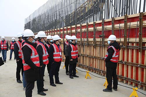 現(xiàn)場(chǎng)會(huì)分別設(shè)置了“現(xiàn)場(chǎng)觀摩、理論授課、經(jīng)驗(yàn)交流、制度解讀、分組討論”等環(huán)節(jié)。其中,現(xiàn)場(chǎng)觀摩安排在淠河六安市城南水利樞紐工程項(xiàng)目部,在講解員帶領(lǐng)下,參會(huì)人員分批次來(lái)到項(xiàng)目部指揮中心、拌合站、試驗(yàn)室、鋼筋加工廠以及基坑底板施工面,實(shí)地觀摩現(xiàn)場(chǎng)施工管理、安全文明施工、辦公場(chǎng)所和黨建文化設(shè)置,查閱項(xiàng)目部管理運(yùn)行相關(guān)文件資料,聽取經(jīng)驗(yàn)介紹。